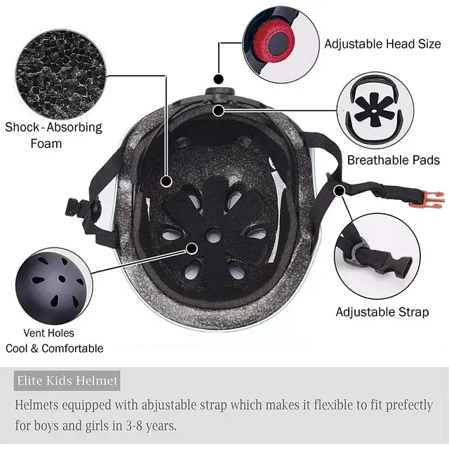 • 7-in-1 KIDS PROTECTIVE GEAR SET-- 1*Helmet /2*Elbow pads/2*knee pads /2*wrist guards ,7pcs Protective Gear set, bring you all-round and perfect protection while doing sports.