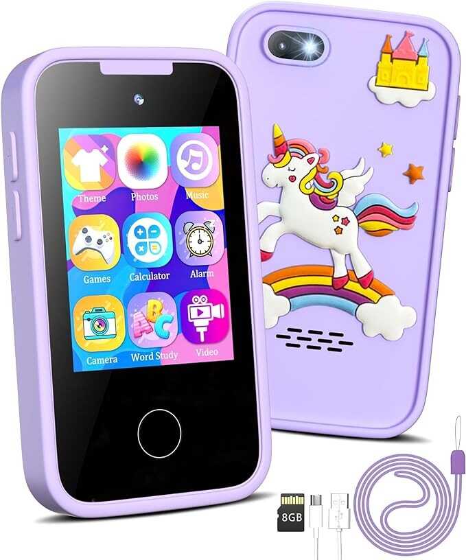 Kids Smart Phone Unicorns Gifts for Girls 6-8 Year Old Touchscreen Toy Cell Phone with Multi APPs 8G TF Card for Learning Play Christmas Birthday Gifts for Girls Age 3 4 5 6 7 8 9