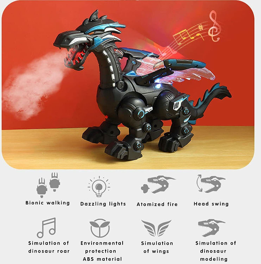 2. 【Interactive Dinosaur Toy】: Growls Walking dinosaur has Technology Machinery Dinosaur appearance. Dinosaur has stunning, dazzling lights that illuminates. It could move, flame spraying, realistic roaring Suitable for family entertainment, but also the children's loyal growth partner.