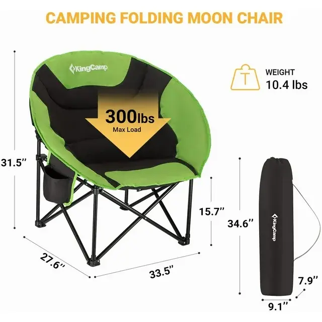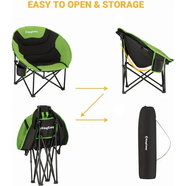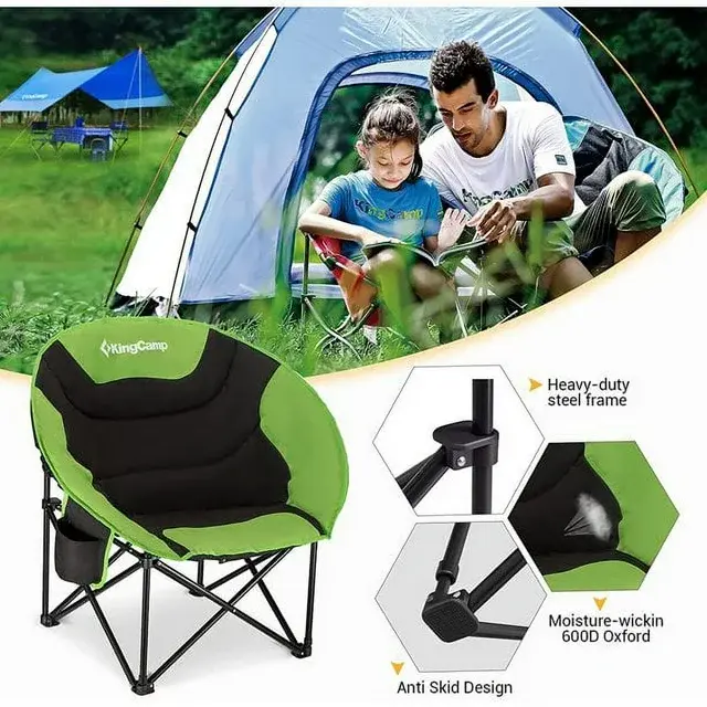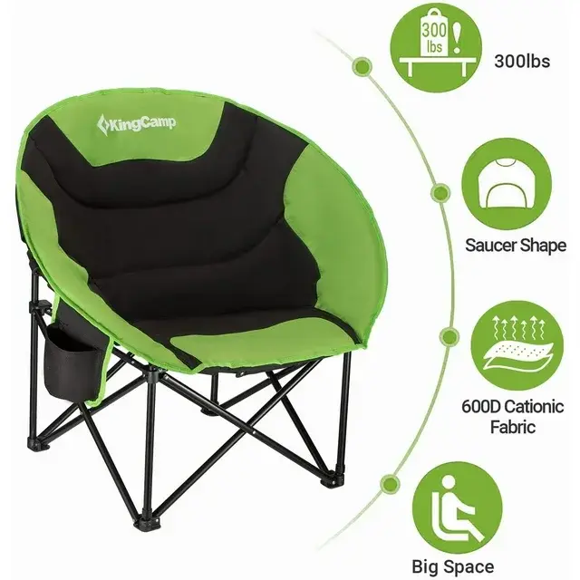 KingCamp Folding Camping Saucer Chairs Oversized Moon Round Sports Outdoor Chairs with Cup Holder for Adults Green