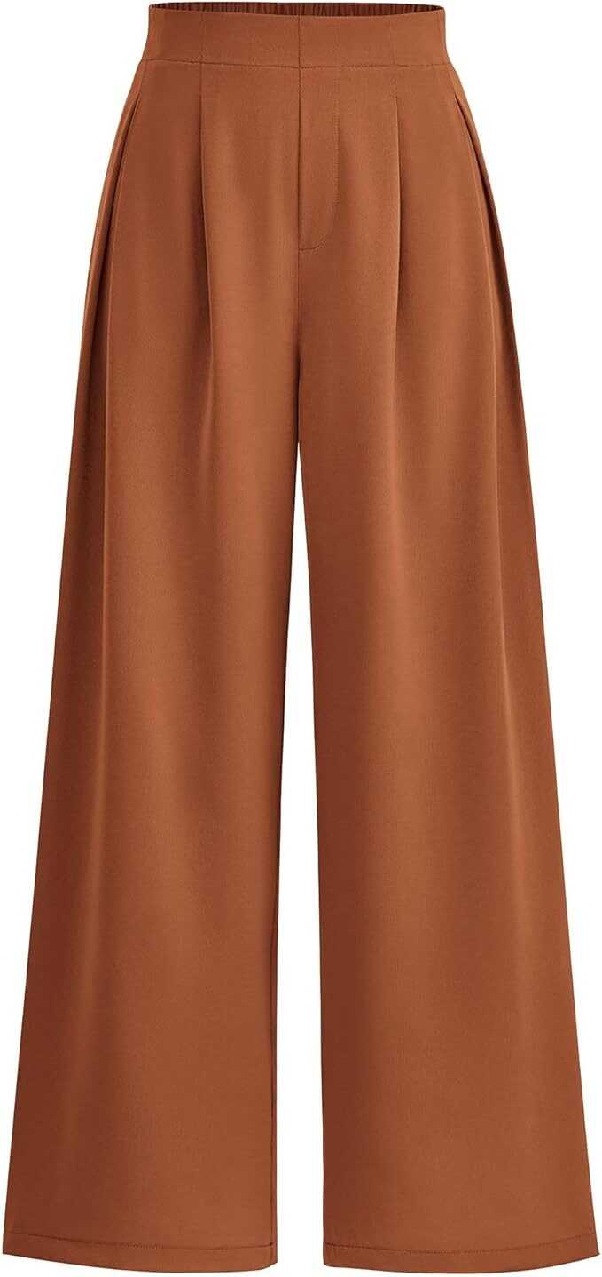 Elastic High Waisted Wide Leg Work Pants: Our Palazzo Casual Dressy Pants Come With an Elastic Waistband Pleat Effect On The Back, Allowing a Secure Fit For Any Body Shape. These Baggy Pants Women Feature An Ample, Wide-Legged Design That Provides Unmatched Comfort And Freedom Of Movement.