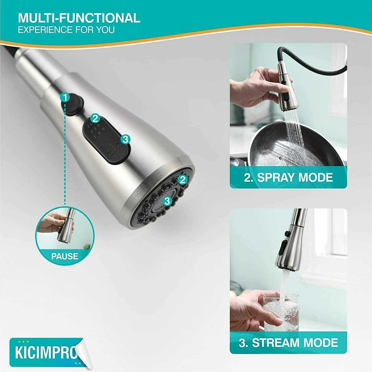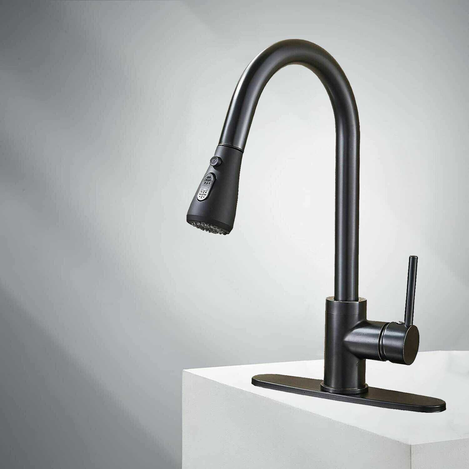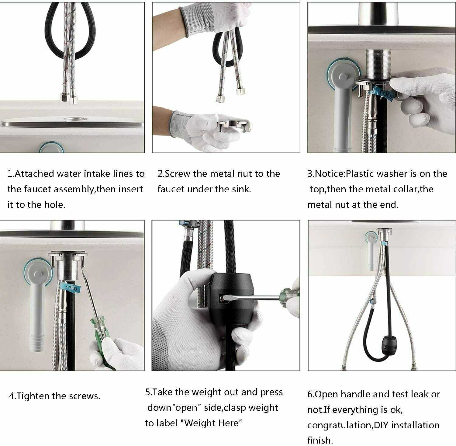 Kitchen Sink Faucet Pull Down Single Handle Swivel Sprayer Mixer Tap W/Plate