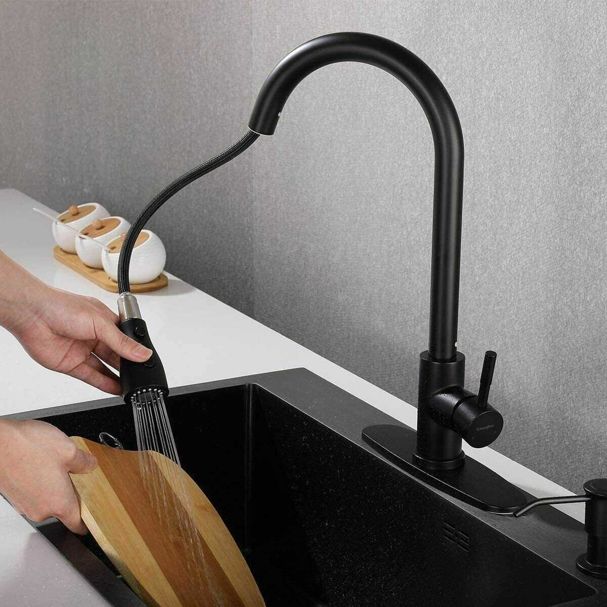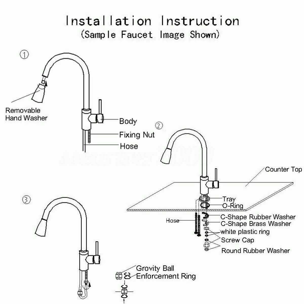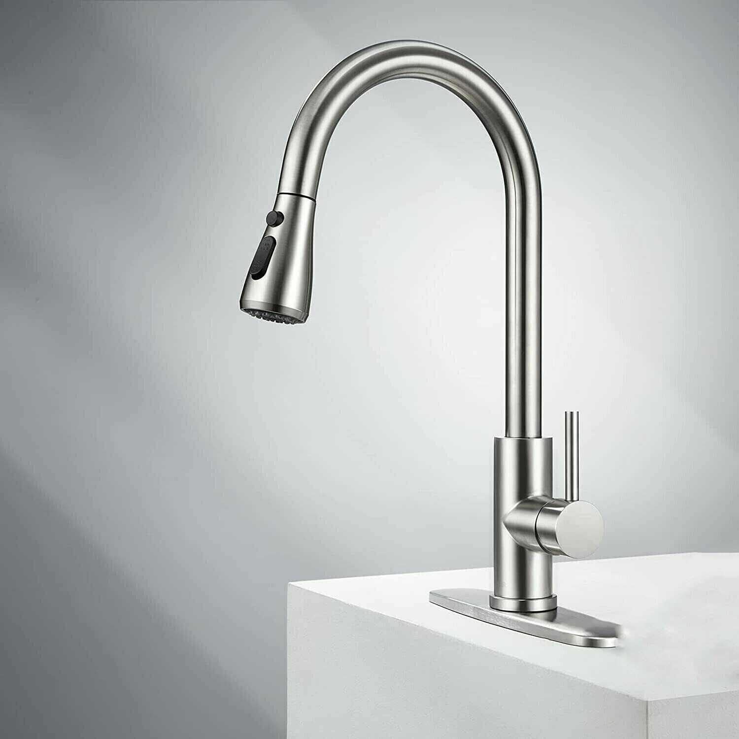 Kitchen Sink Faucet Pull Down Single Handle Swivel Sprayer Mixer Tap W/Plate