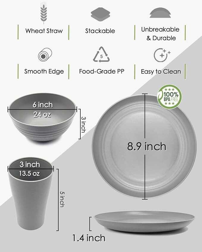Package Includes - 12-Piece dinnerware set with 4 wheat straw dinner plates, 4 unbreakable bowls, and 4 unbreakable cups, service for 4. 100% refund or replacement guarantee, contact us if you have any problem.