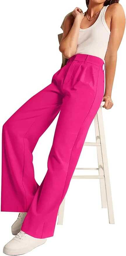 KUNMI Women's Wide Leg Pants Work Business Casual Loose High Waisted Dress Palazzo Flowy Trousers