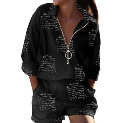 Ladies Two Piece Outfit Long Sleeve Jogger Set Women Loose Fit Sports V Neck New