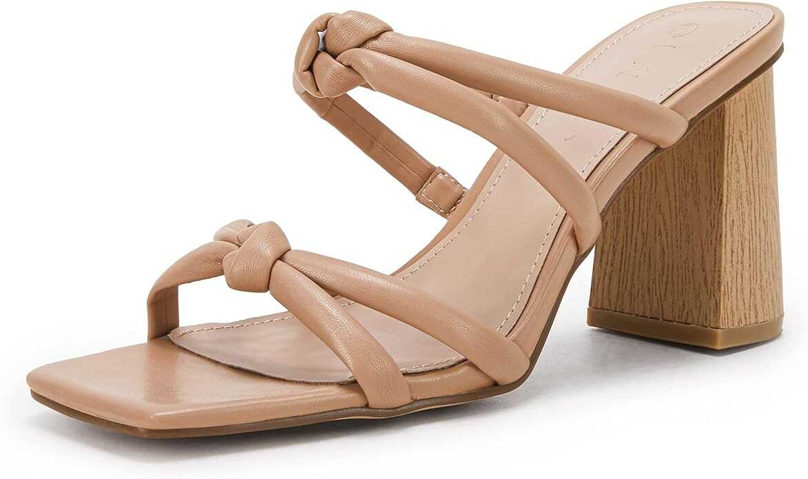 • Feature: Heeled sandals for women, square open toe, 3.54 inches chunky block heel, double knot, sleek padded insole, backless, solid color, non-slip
