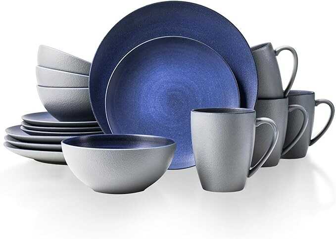 • PERFECT FOR GIFTING: Our dinnerware set is cool and trendy. Especially in a fashionable blue and gray. This 2-tone glazed dinnerware set is popular with young people. Perfect gift for housewarming, Thanksgiving, Christmas and joyous celebrations.