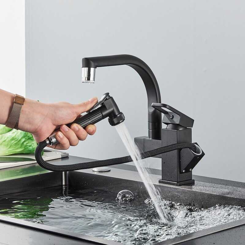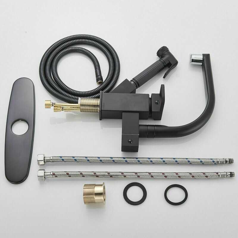 LED Kitchen Sink Faucet Matte Black Single Handle Pull Down Sprayer with Cover