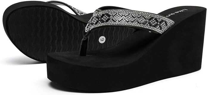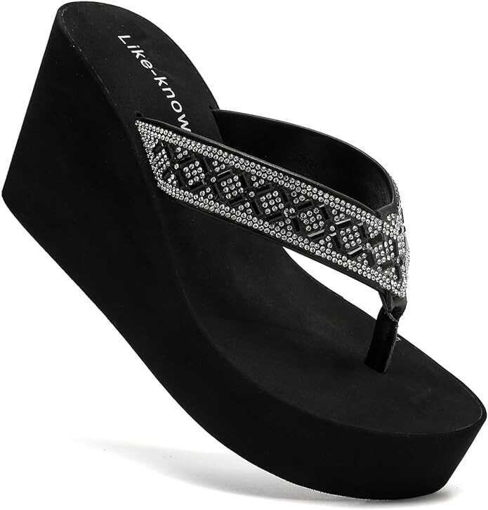 Like-know-like Rhinestone Wedge Sandals for Women Platform Flip Flops Wedge flip flops Wedding shoes Wedge Heels for Women Dressy