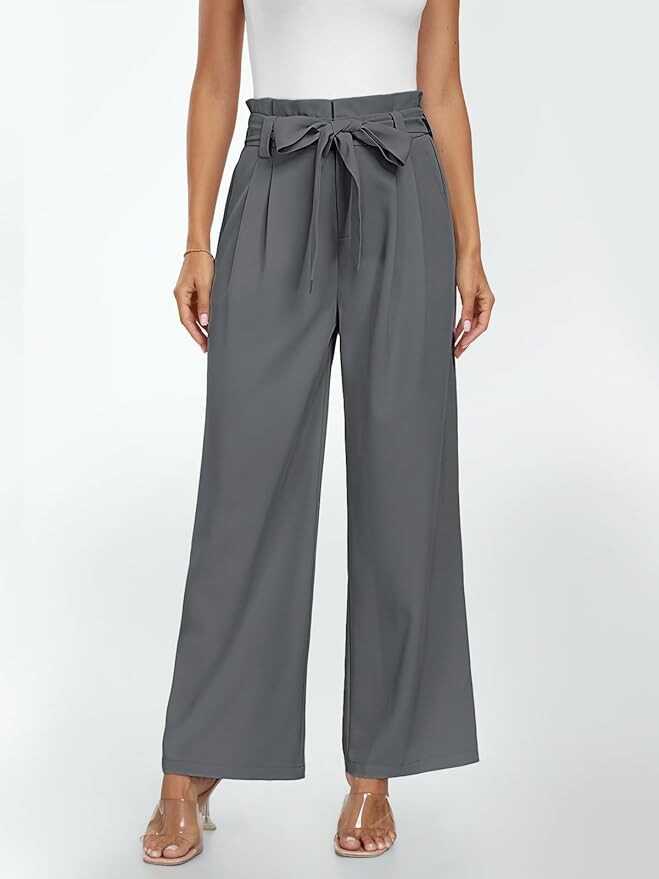 LILLUSORY Wide Leg Dress Pants Women's Paperbag High Waisted Business Casual Trousers with Removable Belt