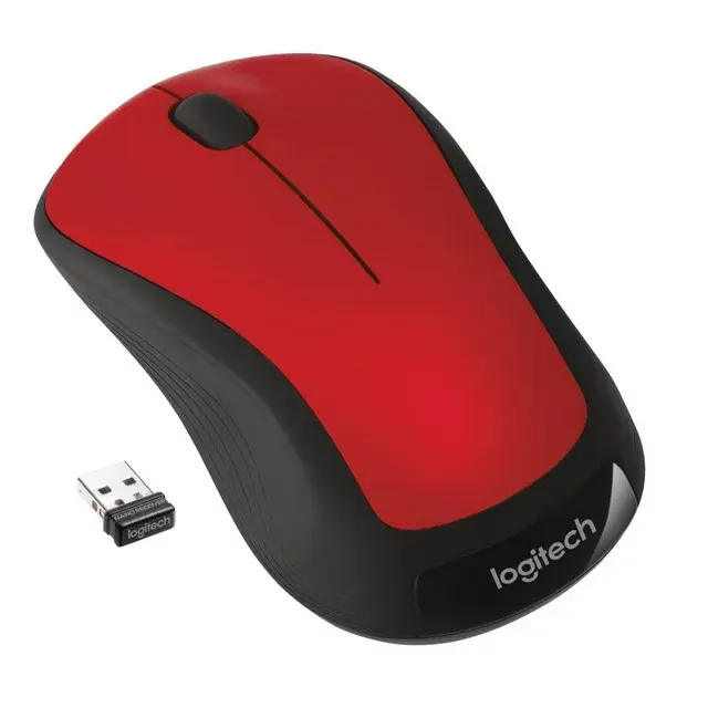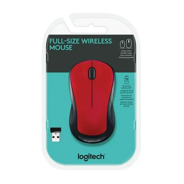 Logitech Full-Size Wireless Mouse, USB Nano Receiver, 1000 DPI Optical Tracking, Ambidextrous, Red
