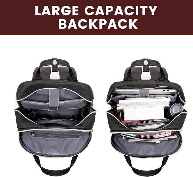 • 【LARGE CAPACITY】One backpack to solve all travel troubles. The large capacity laptop backpack has multiple divider pockets, easy for holding laptop, ipads, Phone, binder, water bottle, umbrella, readers, journal, magazine, clothes, pens, wallet and so on.