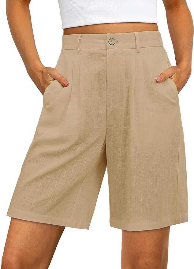luvamia Bermuda Shorts for Women High Waisted Linen Dressy Casual Pleated Wide Leg Summer Shorts with Elastic Waist