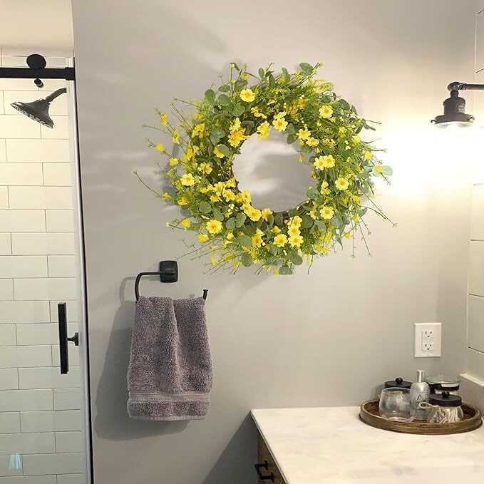 LVLFOR 24In Artificial Yellow Daisy Wreath, Spring Wreath with Green Eucalyptus Leaves, Yellow Flowers with Grapevine Wreath, Silk Floral Spring Summer Wreaths for Front Door Window Wall Porch Decor