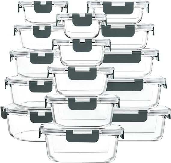 HIGH QUALITY BOROSILICATE GLASS: Our glass storage containers are made of high quality borosilicate glass, which is stronger than cheaper glass food storage containers, safely go straight from the refrigerator to the microwave or oven to the table. Also, they are designed to be nested to save space.