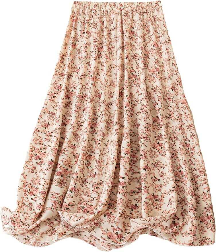 MakeMeChic Women's Plus Size Floral Print Elastic High Waist Ruffle A Line Maxi Long Skirt
