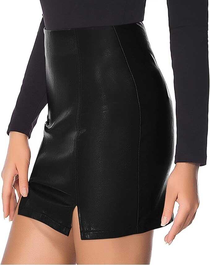 • Mini Short Skirt for Women - Leather skirt for women sexy features with double slits, high waist, concealed zipper closure in the back, slim fit style, package hip design, above knee length, to show off your ultra-sexy and chic figure. Comfortable room in the butt and thighs make you easy to walk around.Every female need a mini skirt like this in their closet, the little black dress of skirts.