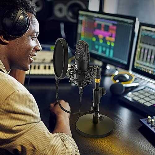 • PLUG and PLAY: The microphone has USB 2.0 data port which is easy to connect with your computer and Linux operation system, and no need extra driver software, and no need for an external sound card. Double shielding USB cable reduces interference. That makes it easy to sound good on a podcast, livestream, video call, or most any other kind of recording