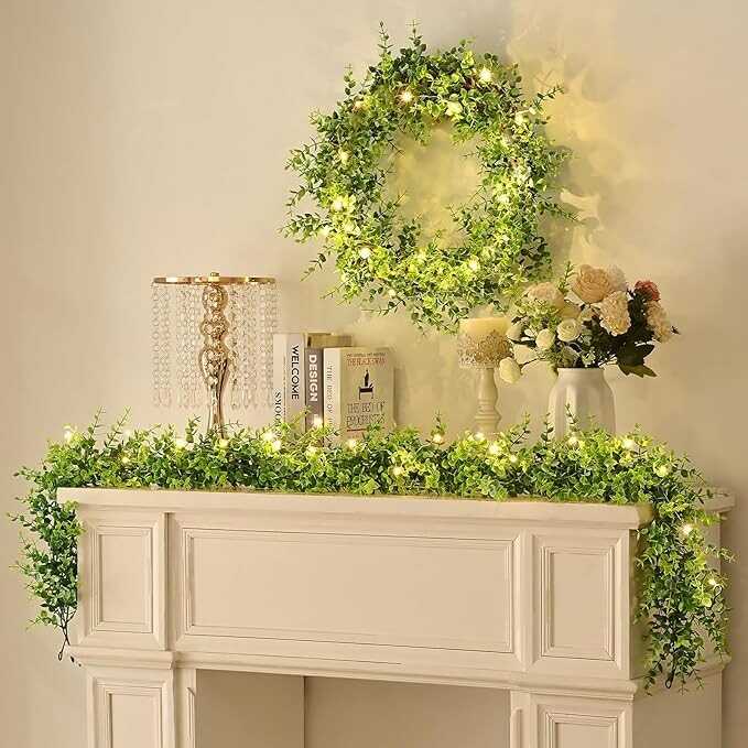 PACKAGE & SIZE: This package comes with 2 pieces of artificial eucalyptus garlands and 2 LED light strings(total 13ft). Each faux eucalyptus garland is about 6ft / 1.8m in length. The loop at the end is convenient for installation and disassembly, so it is flexible and practical to meet different decoration needs.