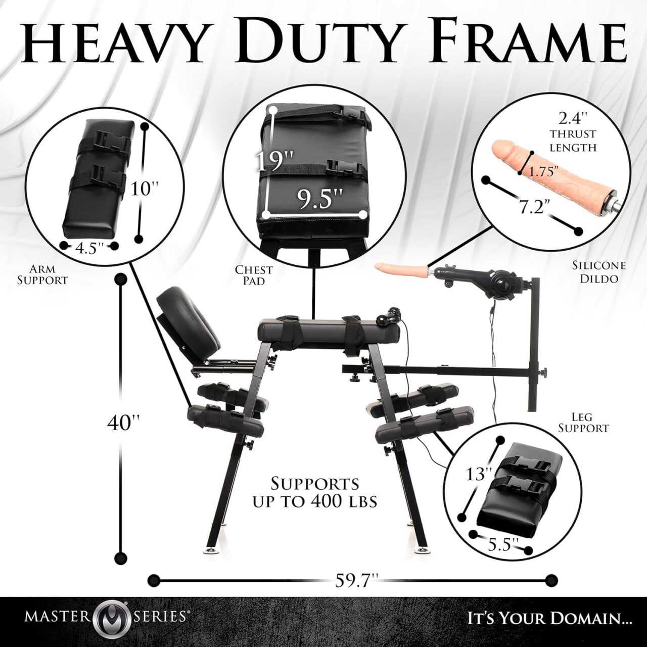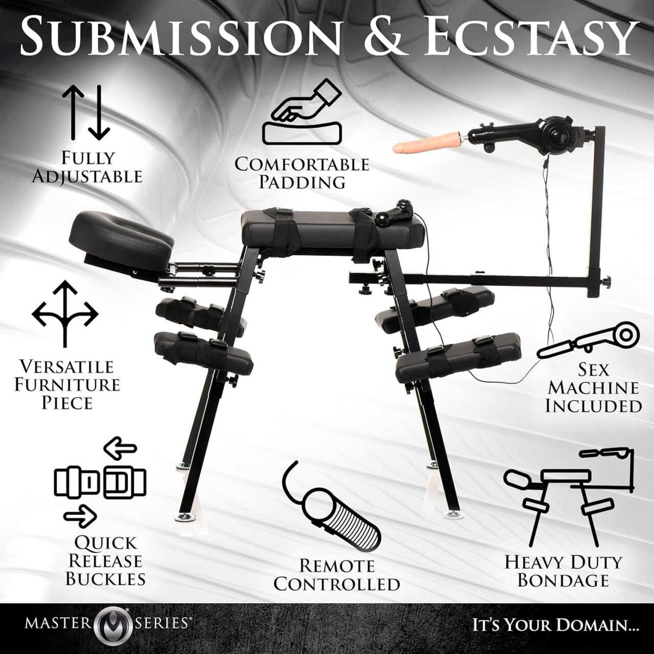 MASTER SERIES Obedience Bench with Sex Machine for Men, Women, & Couples. Adjustable & Ergonomic, Heavy Duty Design, Remote Controlled Multi Speed Sex Machine with Silicone Dildo. Black.