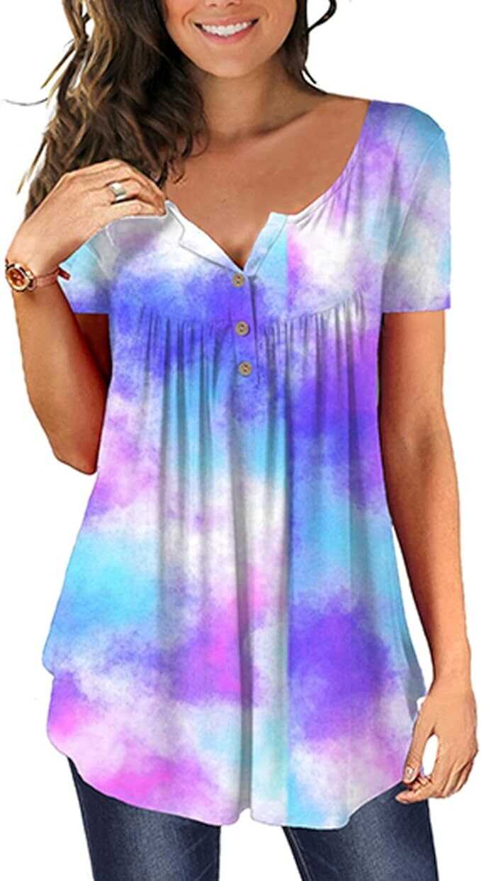 Feature: Loose style, button front design, short sleeve, flowy bottom hem, floral pattern, womens summer tops,dressy tops for women,short sleeve tunic tops for women,women tops and blouses.