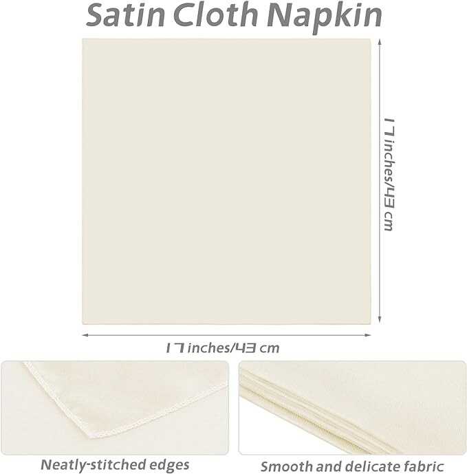 • Size information: each satin cloth napkin measures 17 x 17 inches/43 x 43 cm in size, which is fit for decorating a table that can seat 8-10 persons; besides, the quantity of satin napkins is sufficient to meet your dining and decoration needs