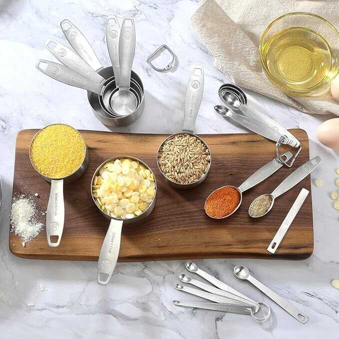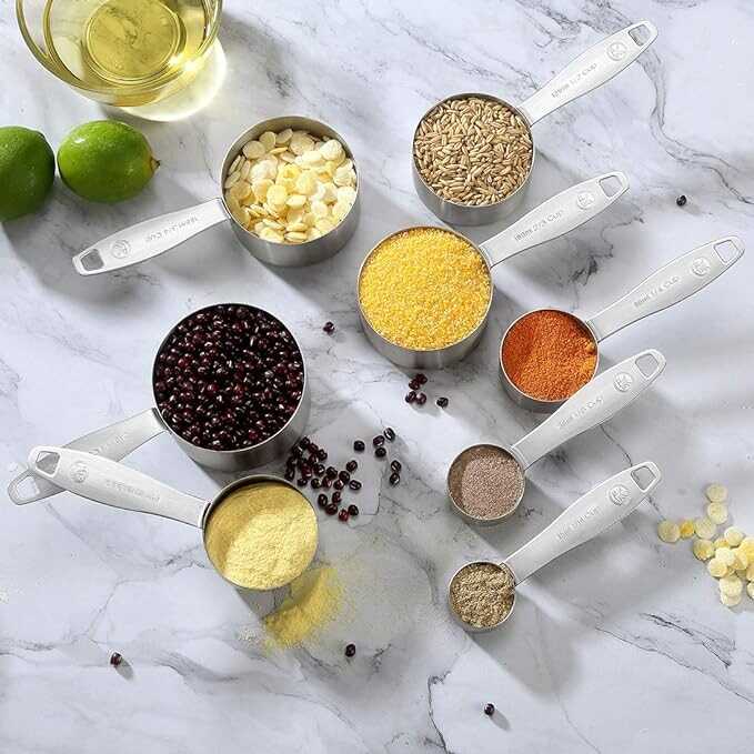 • [Complete Set of 21] Includes 8 Measuring Cups (1/16 cup, 1/8 cup, 1/4 cup, 1/3 cup, 1/2 cup, 2/3 cup, 3/4 cup, 1 cup), 7 Measuring Spoons (1/8 tsp, 1/4 tsp, 1/2 tsp, 3/4 tsp, 1 tsp, 1/2 tbsp, 1 tbsp), 1 Leveler & 5 Mini Measuring Spoons (Tad, Dash, Pinch, Smidgen, Drop), totally 21 sizes to meet all your dry and liquid measuring needs.