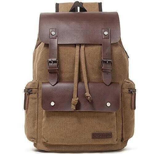 Men Vintage Leather School Travel Backpack Canvas Laptop Hiking Rucksack
