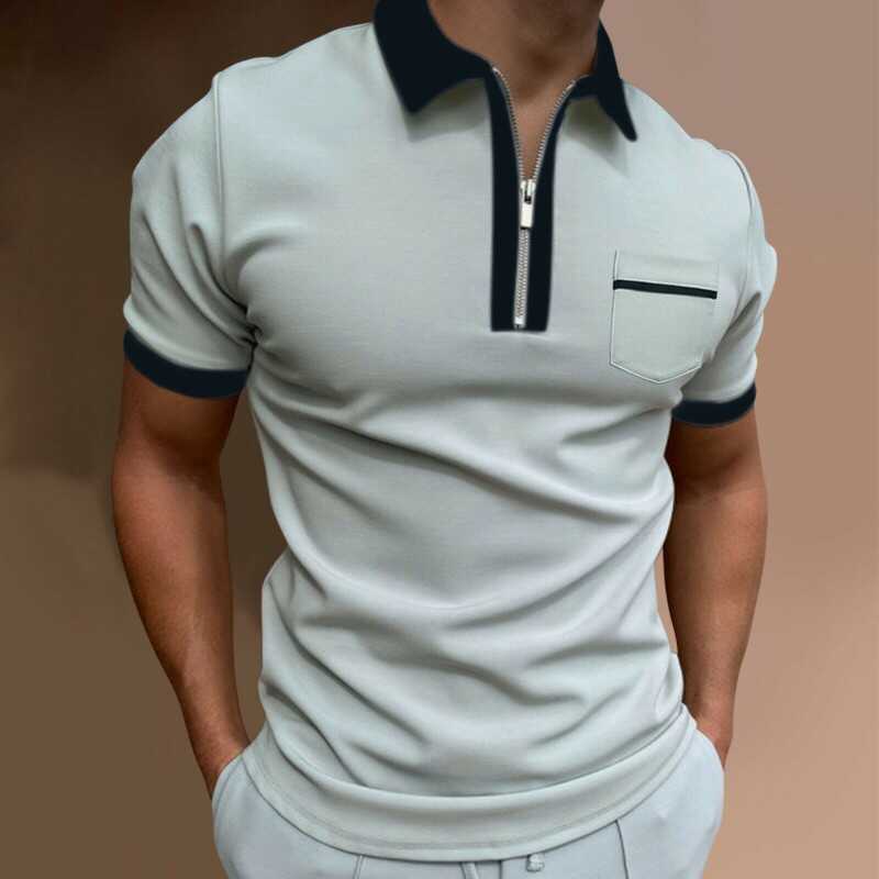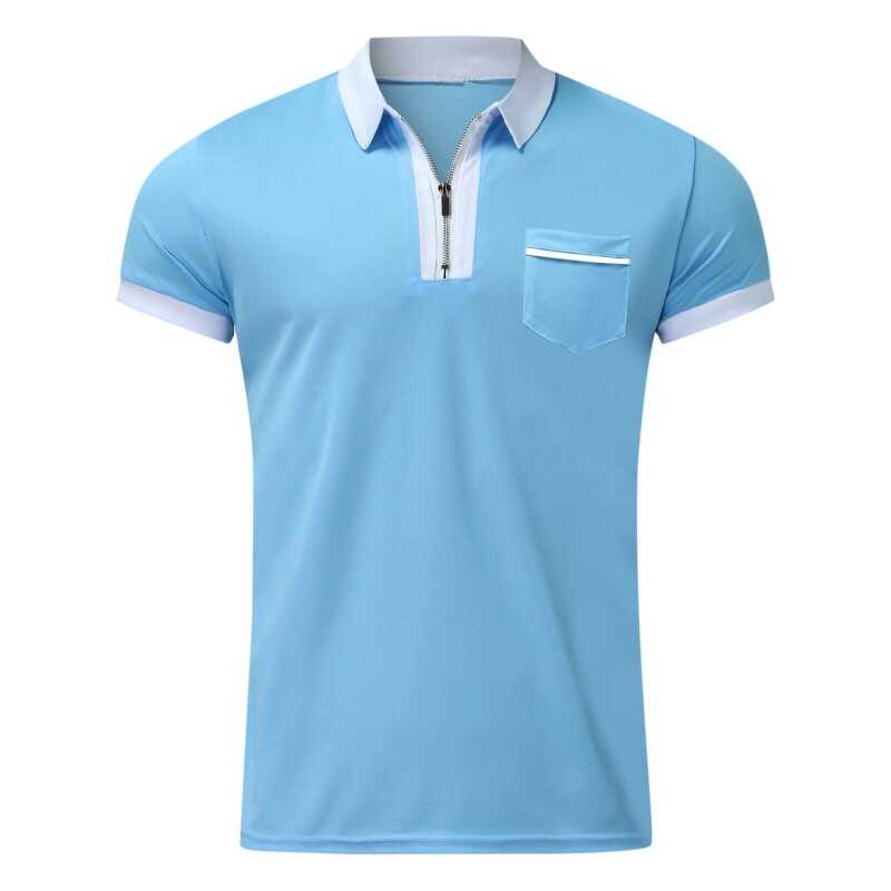 Men Zipper Polo Short Sleeve Shirts Casual Slim Fit Basic Golf Lapel Tee Top