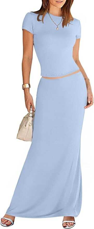 • Features: Short sleeve, round neck, slim fitting short top paired with mermaid long skirt, enhancing curves, solid color, sexy Y2K style, bodycon dresses for women, skirt sets women 2 piece outfits.