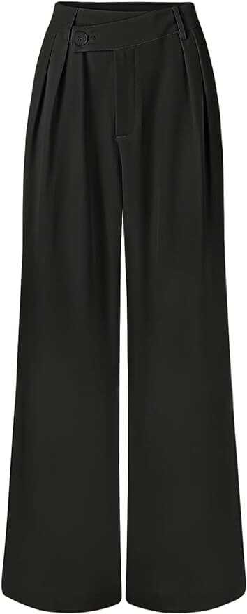 Unique Design: High waist, wide leg, long straight pants, asymmetrical overlap button at waist, pleated front, side pockets, solid color, casual and relaxed fit, light colors are lined.