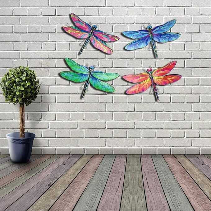 • 4 Pack Colorful Dragonfly Decor: Adorable metal dragonfly wall art with vibrant colors and exquisite structure that you could consist a theme with other garden decor or rusty elements.