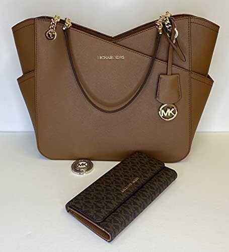 MICHAEL Michael Kors Jet Set Travel Large Chain Shoulder Tote bundled with Michael Kors Jet Set Travel Trifold Wallet