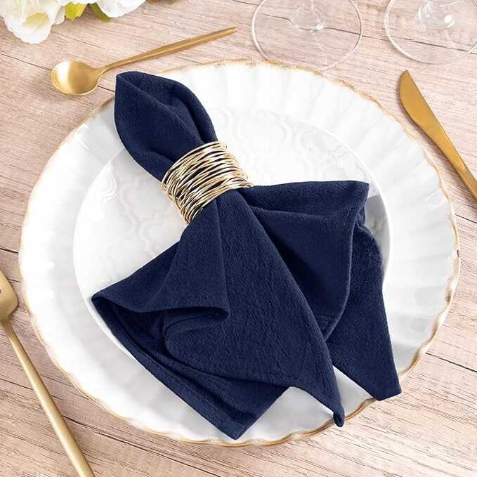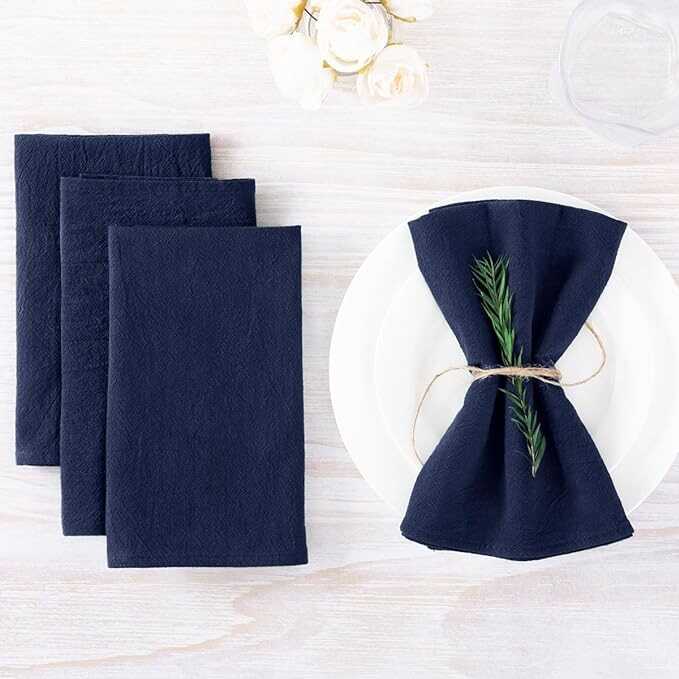 MLMW Thick Cotton Linen Napkins Set of 6 Soft Dinner Napkins Cloth 17"×17" Bulk Rustic Table Napkins for Wedding Party Easter Table Decoration, Navy