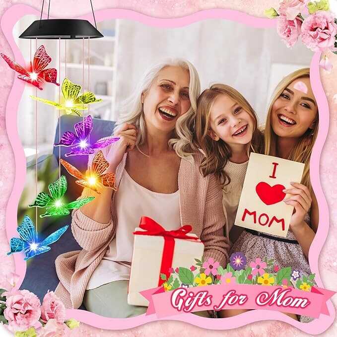 Mom Gifts for Mothers Day Grandma Gift, Winzwon Butterfly Solar Wind Chimes for Outside Solar Lights Outdoor Decor Hanging Mobile for Garden Patio Yard Porch Decoraion Birthday Gifts for Women