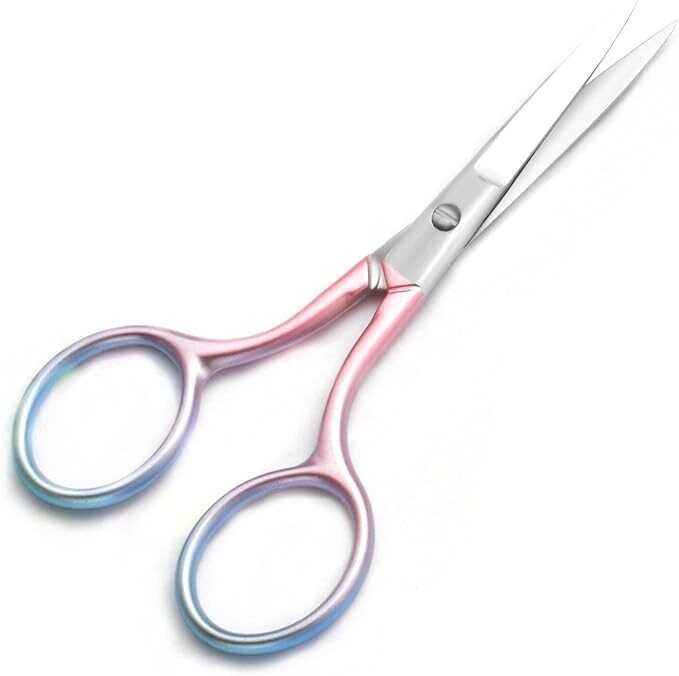 Motanar Multicolor Professional Grooming Scissors for Personal Care Facial Hair Removal and Ear Nose Eyebrow Trimming Stainless Steel Fine Straight Tip Scissors 3.9 Inch (Pink)