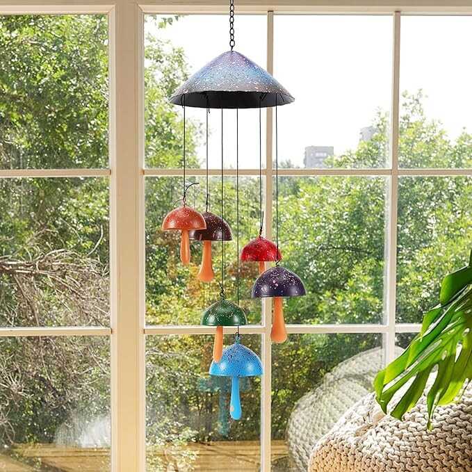 • Material: Mushroom decorative wind chimes is made of high quality metal and nylon rope. You can hang it outdoors for a long time without worrying about rust.