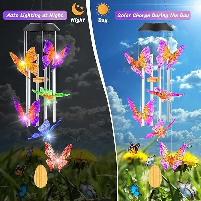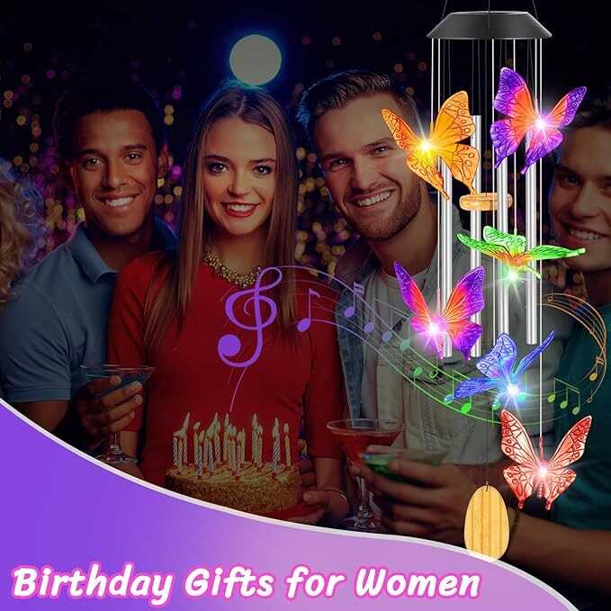 • ??【Mothers Day Gifts for Mom Butterfly Wind Chimes】The solar lights wind chimes lights for outside is suitable for use as mothers day gifts for mom wife grandma,birthday gifts for women men, valentines day gifts for her him,gifts for women,gifts for him boyfriend,mothers day gifts for mom from daughter son.Butterfly wind chimes mothers day gifts are perfect presents for Mothers Day,Valentines Day,Anniversaries,Fathers Day,Birthday,Thanksgiving,Party,Retirement,Christmas.