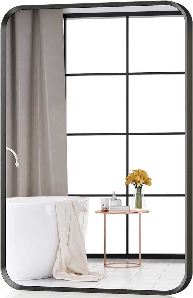Muzuli 20x30 inch Black Framed Rectangle Mirror Bathroom Mirror for Wall Decor Hangs Horizontally or Vertically for Bathroom Bedroom LivingRoom Entryway