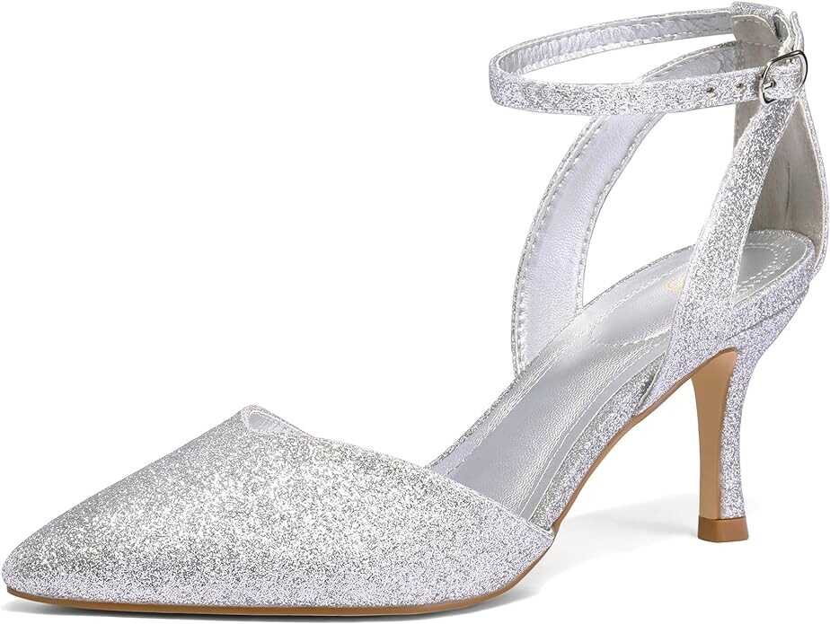 【Classic Design】 Ankle strappy heels and backless style silhouettes keep you breathable all day. With the classic pointed toe design, it exudes elegance.