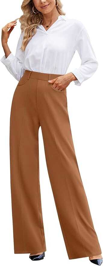 • [Professional Look] This wide leg dress pants/work pants for women features wide leg, belt loops, high waist. There are pleats on the front and back of the dress pants/slacks, which can make these dress pants look more straight and delicate, giving you a professional look.