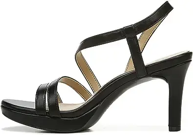 • Women's heeled dress sandal with strappy details and subtle platform sole