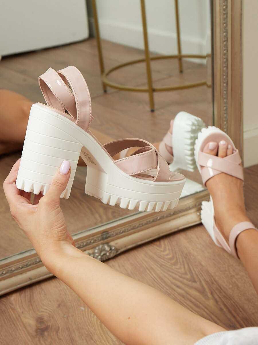 New Ladies Women strap ankle Chunky Platform Heeled Open Toe Sandals 3-8