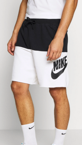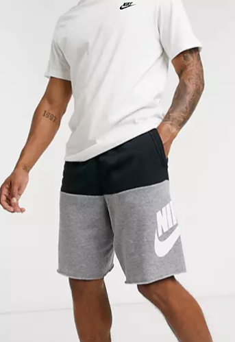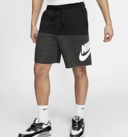 COLOR-BLOCKED COMFORT. The Nike Sportswear Alumni Shorts are designed with raw edges around the pockets and hem for a laid back look. The color-block design gives you bold, street-ready style. Soft and Stylish Looped back French terry fabric is soft against your skin while a color-block design offers a summer-ready look. Custom Fit Ribbed elastic waistband with drawcord offers a personalized fit. Product Details Large graphic on left leg Body/upper body/lower body: 58-59% cotton/23-25% rayon/17-18% polyester. Side pocket knuckle side: 100% cotton. Material percentages may vary.