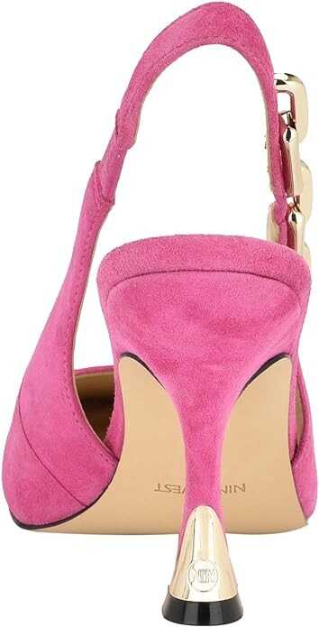 • Chic and sophisticated, the Nine West Veroni slingbacks are the perfect wardrobe staple! The Veroni features a tapered heel, pointy toe and a slingback strap with gold chain detailing. Founded in 1978, Nine West empowers women to take on the world in style, from day to night.