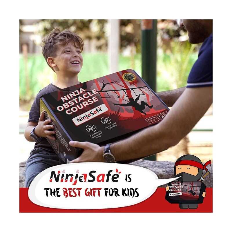 Ninja Obstacle Course for Kids Backyard - 10 Durable Obstacles and 50' Slackl...