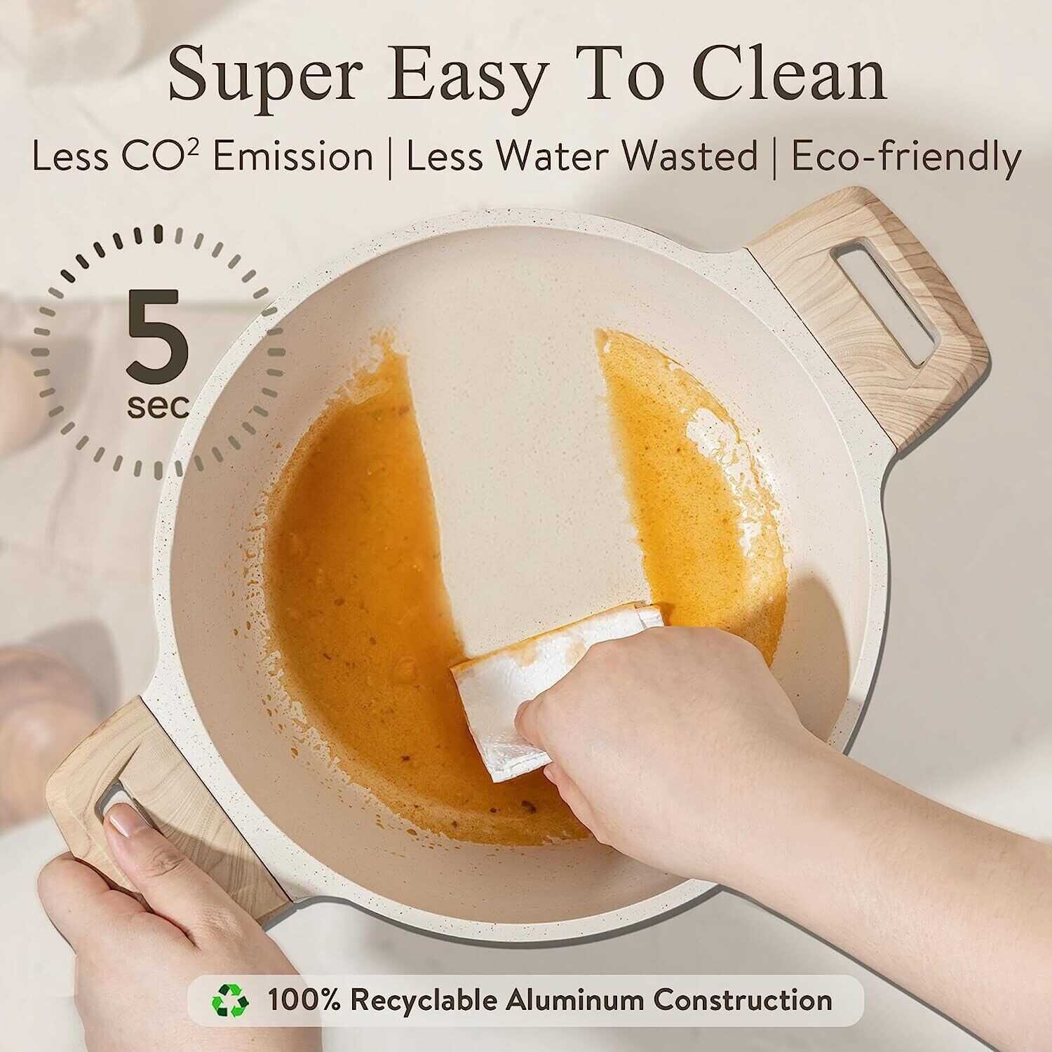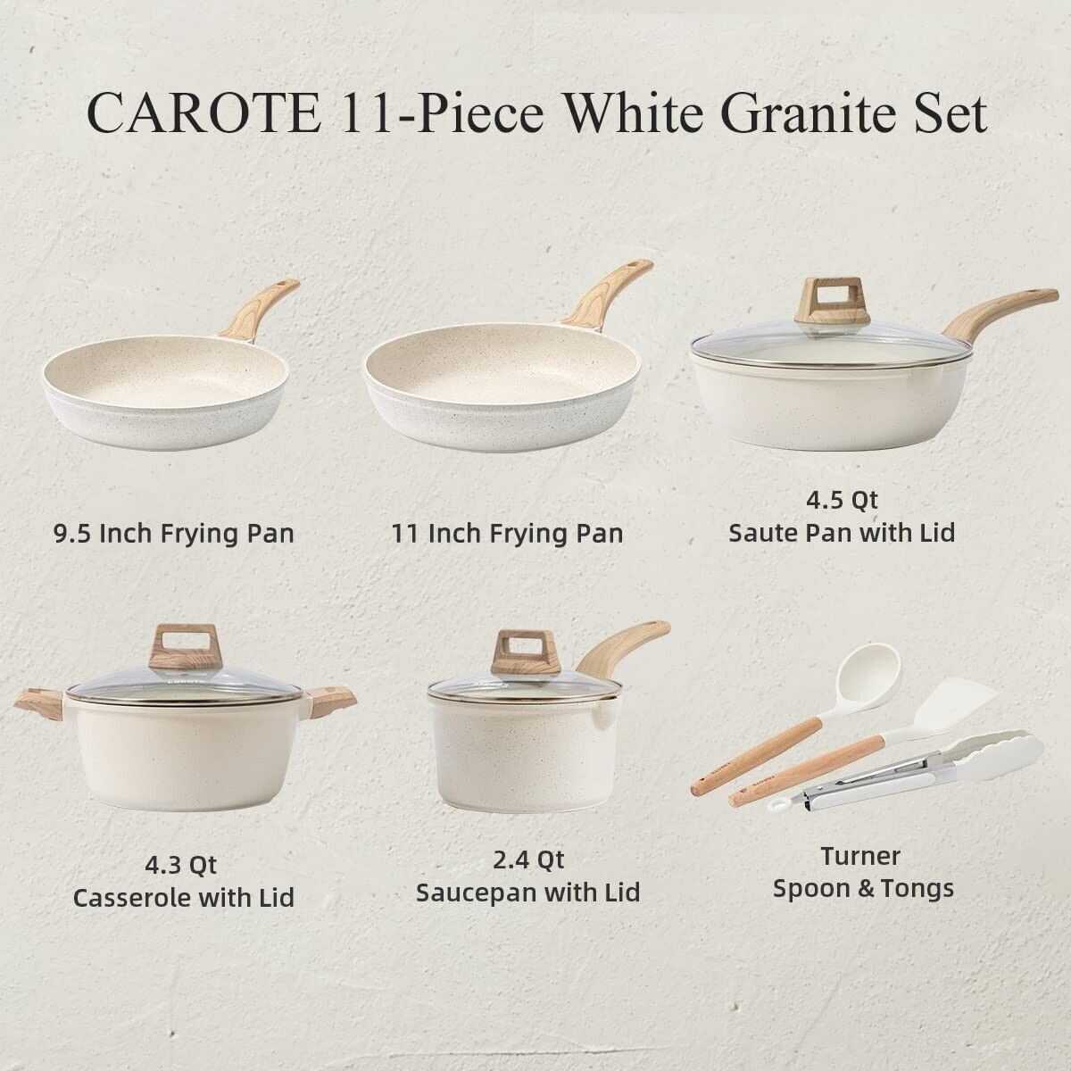 Nonstick Cookware and Pan Set, White Granite 11-Piece Nonstick Cooking Set