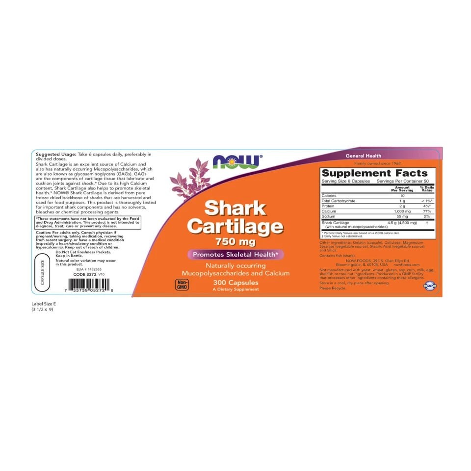 NOW FOODS Shark Cartilage 750 mg 300 Capsules