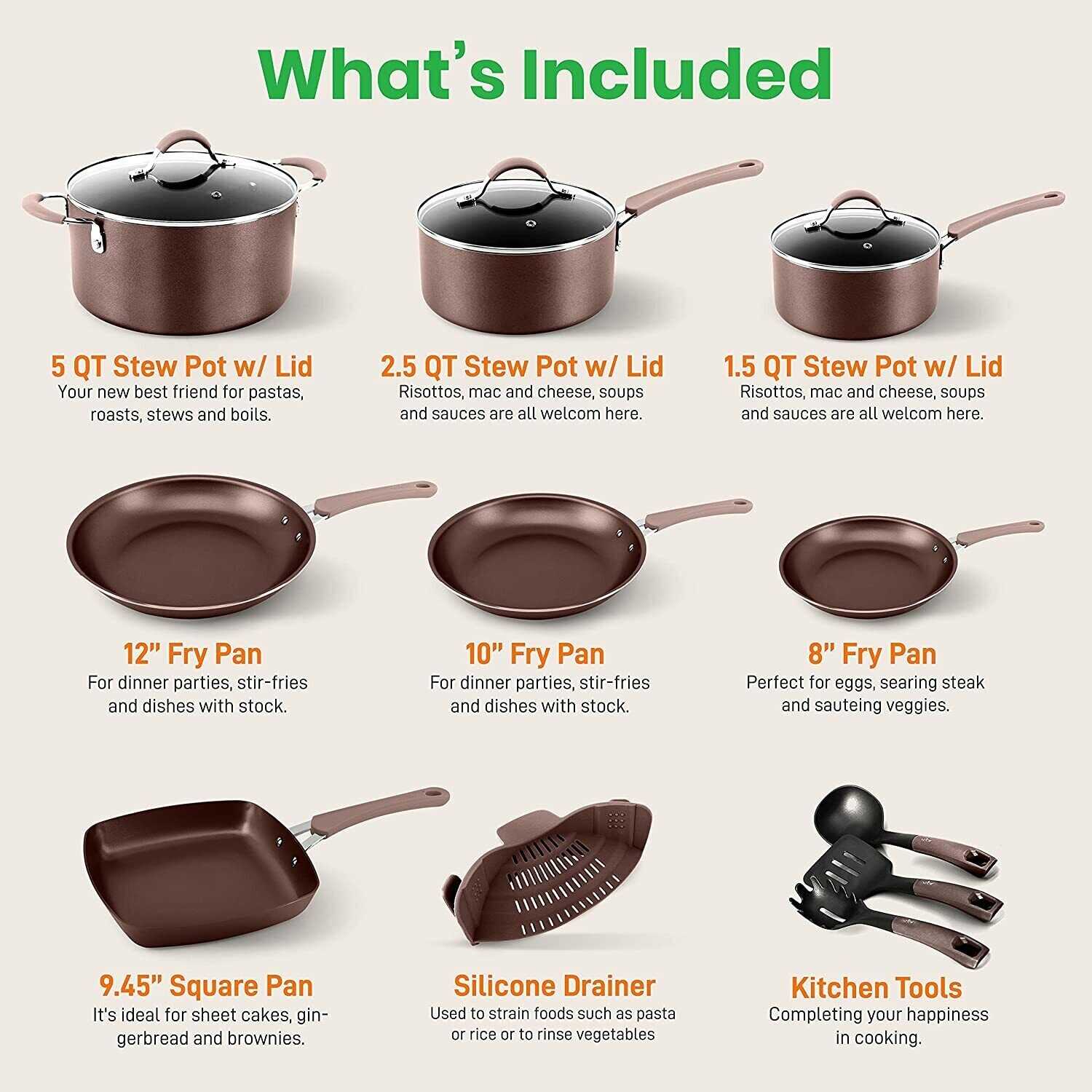 NutriChef Nonstick Cooking Kitchen Cookware Pots and Pans, 14 Piece Set, AGold